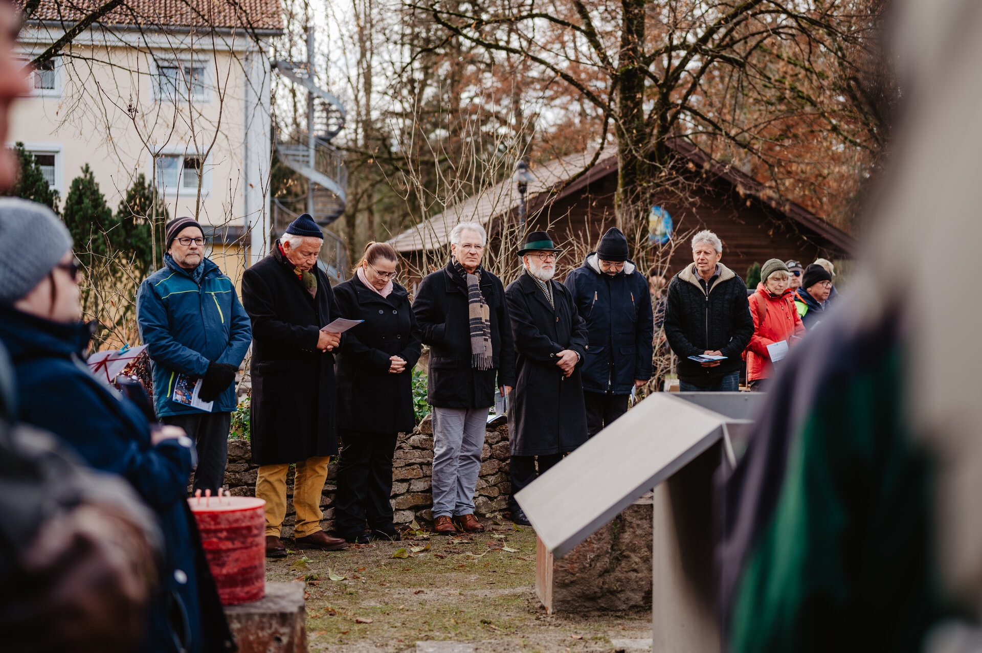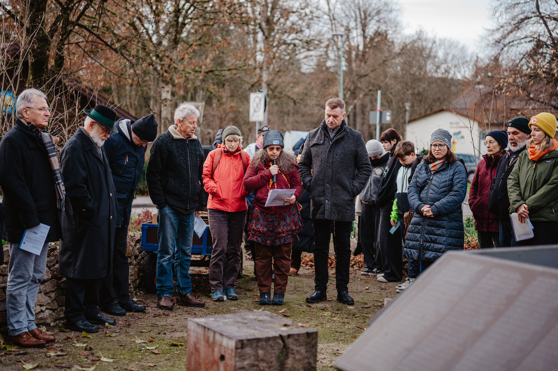 Wir stehen an einem besonderen Ort. Das Denkmal “Ort der Erinnerung” nennt die Namen von rund 430 Menschen, die während der Zwangsherrschaft der Nationalsozialisten in Herzogsägmühle aus mangelnder Versorgung zu Tode kamen oder die an anderen Orten, wie Heil- und Pflegeanstalten oder Konzentrationslagern, getötet wurden. Es erinnert an Menschen, die als “asozial” oder “berufsverbrecherisch” stigmatisiert, entrechtet und verfolgt wurden. Menschen, die ihrer Würde, ihrer Stimme und ihres individuellen Lebens beraubt wurden.