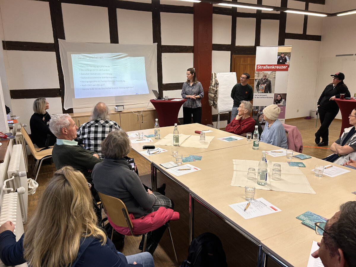 Am 3. Dezember 2025 hielt das Team des Lernorts Herzogsägmühle im Rahmen der “Straßenkreuzer Uni“ in Nürnberg einen Vortrag zum Thema ”Arbeit statt Almosen“. Die Straßenkreuzer Uni ist ein Bildungsformat des Straßenkreuzer e.V., der in Nürnberg eine Zeitung herstellt, die von obdachlosen Menschen verkauft wird.